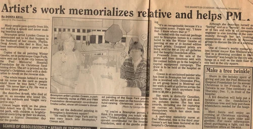 Published in The Guardian, December 7, 1988. I was thrilled to be a part of the Society of Canadian Artists for a number of years, but unfortunately let the membership lapse due to time constraints. Plan to try and become an active member again.