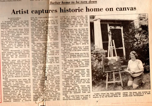 A nice article published Wednesday, July 27th, 1988 in The Herald front page, when I painted The Barber house, built in 1856 before it was destroyed